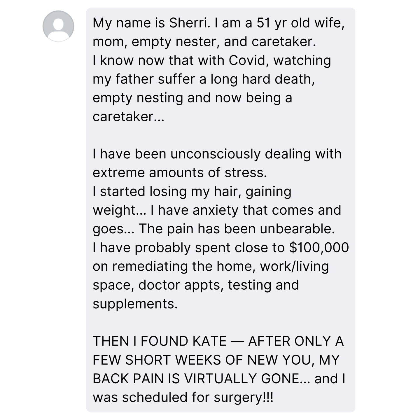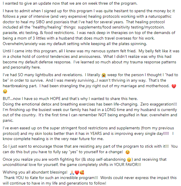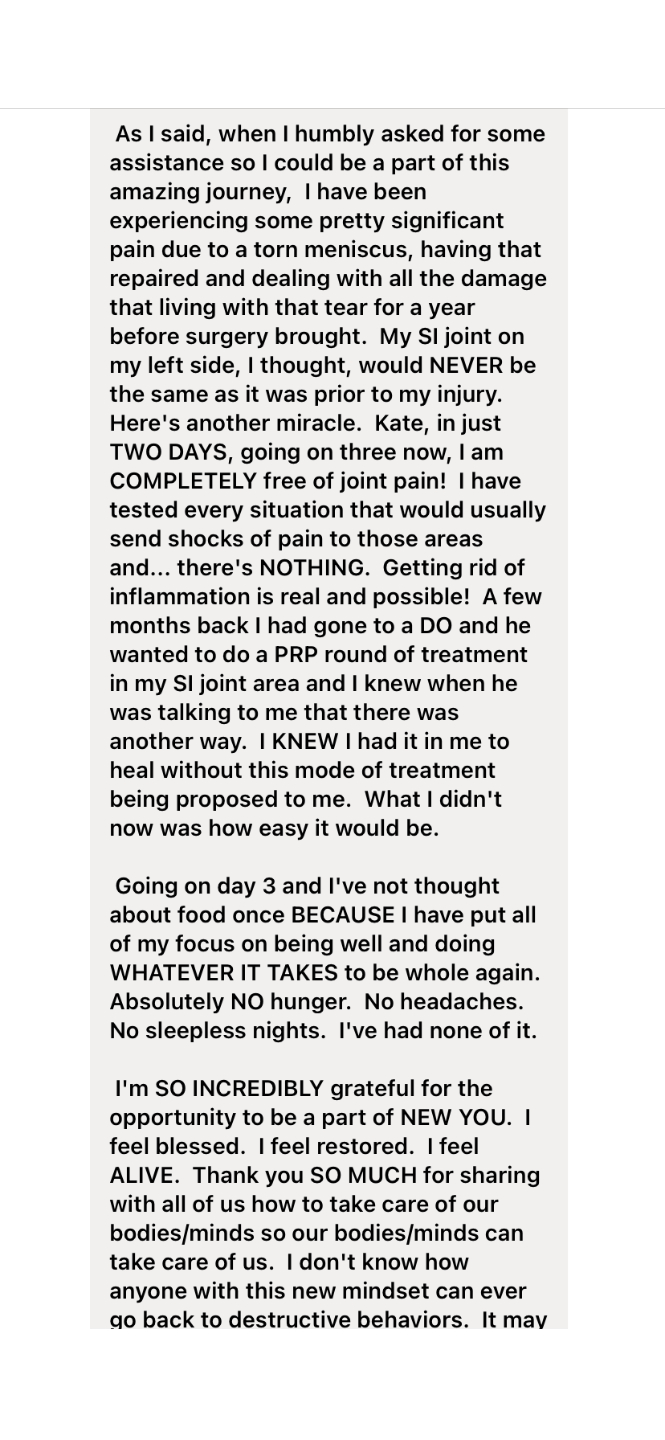 "I am living proof that applying this knowledge cannot only transform your health, but can save thousands and thousands of dollars in medical expenses." — Kate